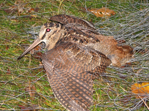 Houtsnipper in net